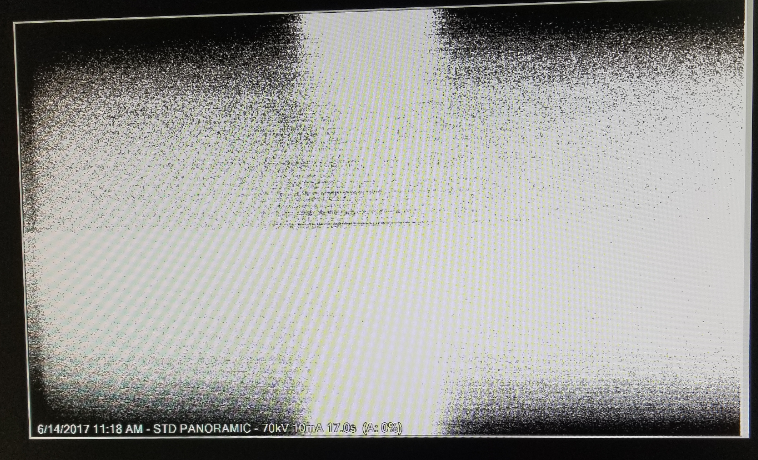 If you have all options enable in configuration menu (see below) you will be able to see % on the final image as seen below. If the image shows 0% and x-ray is white as shown, we must determine if 1) there is no emission from the tube or 2) sensor / sensor cables have an issue.