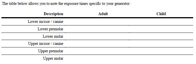 If you do not have our X-Ray tube Please us table below to fine Time of Exposure of your Tube in your Clinic