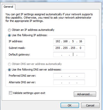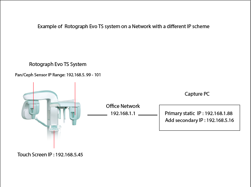 Example of Rotograph Evo TS connected to a network with a different IP scheme :