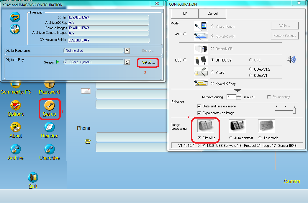 Enable "Film Mode" and Disable "Auto Contrast" Access sensor setup menu. If using Quickvision, select wrench icon on left pane and uncheck Auto Contrast and use Film Alike and save with disc icon. If using third party imaging software, double click the Owandy sensor standalone icon on the desktop with third party software closed. Right click on the red/green sensor toolbar and in the configuration, select Film Alike and save.